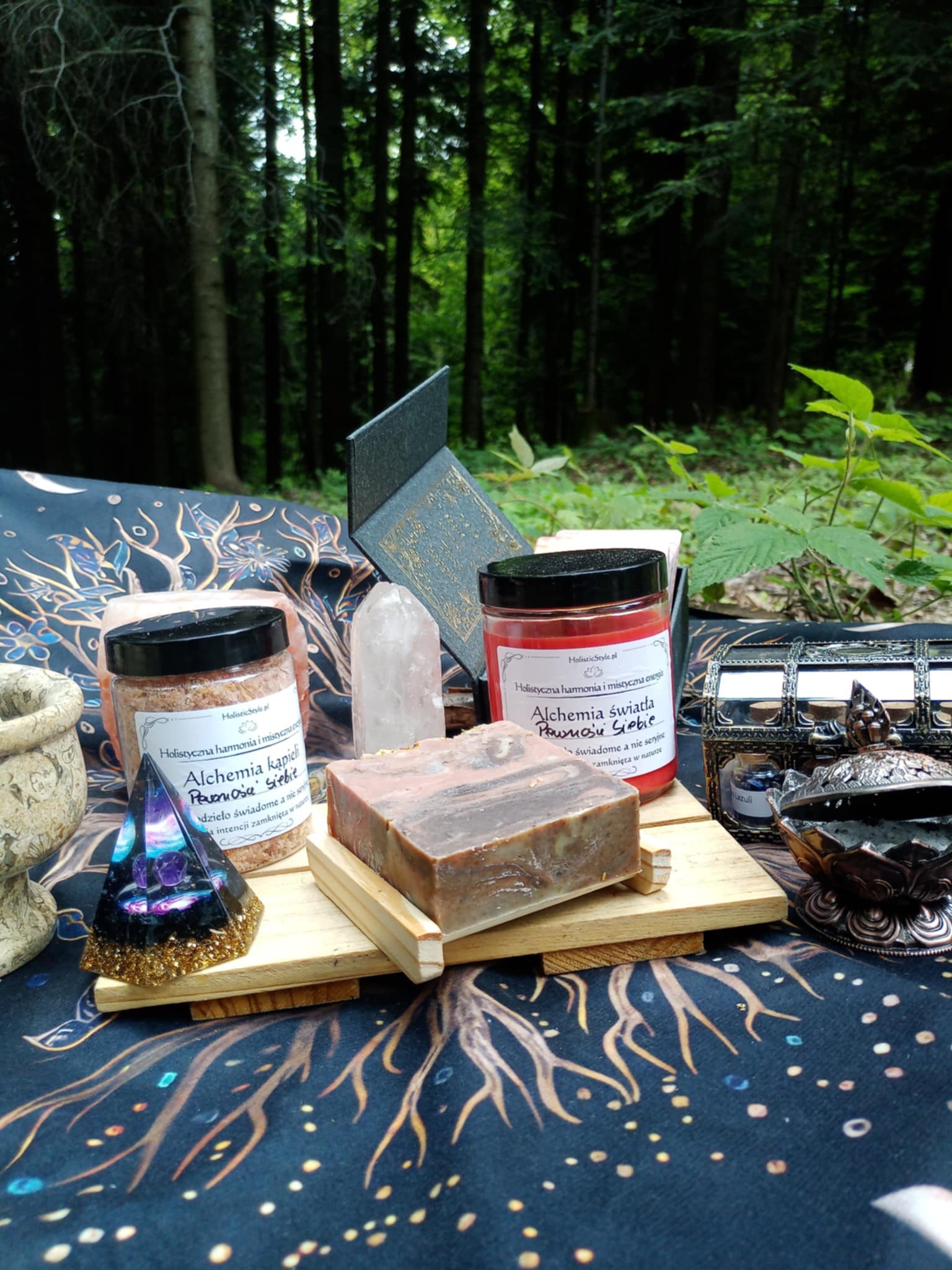 Choć elementy zestawu są podobne to składniki poszczególnych tych elementów są zawsze dobierane indywidualnie — zgodnie z intencją rytuału i emocją, którą wspiera.
